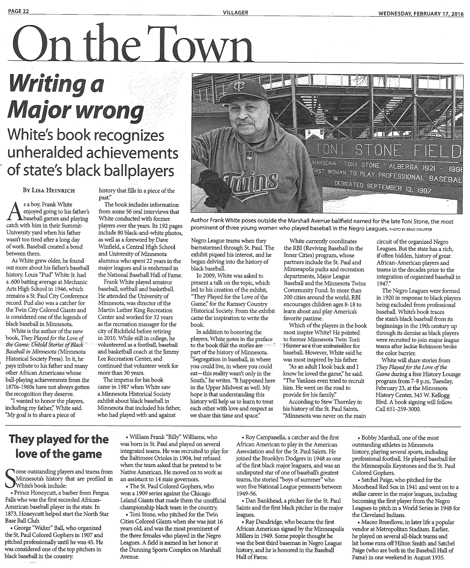 - February 24th – Black baseball in Minnesota: A son’s search for history. MinnPost.com, Pat Borzi.